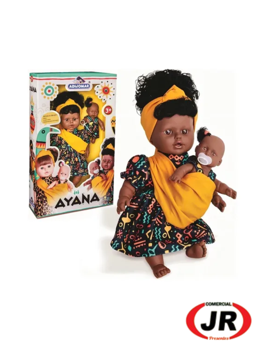 065 - Boneca Ayana Articulada Africana Negra Com Filha Menina