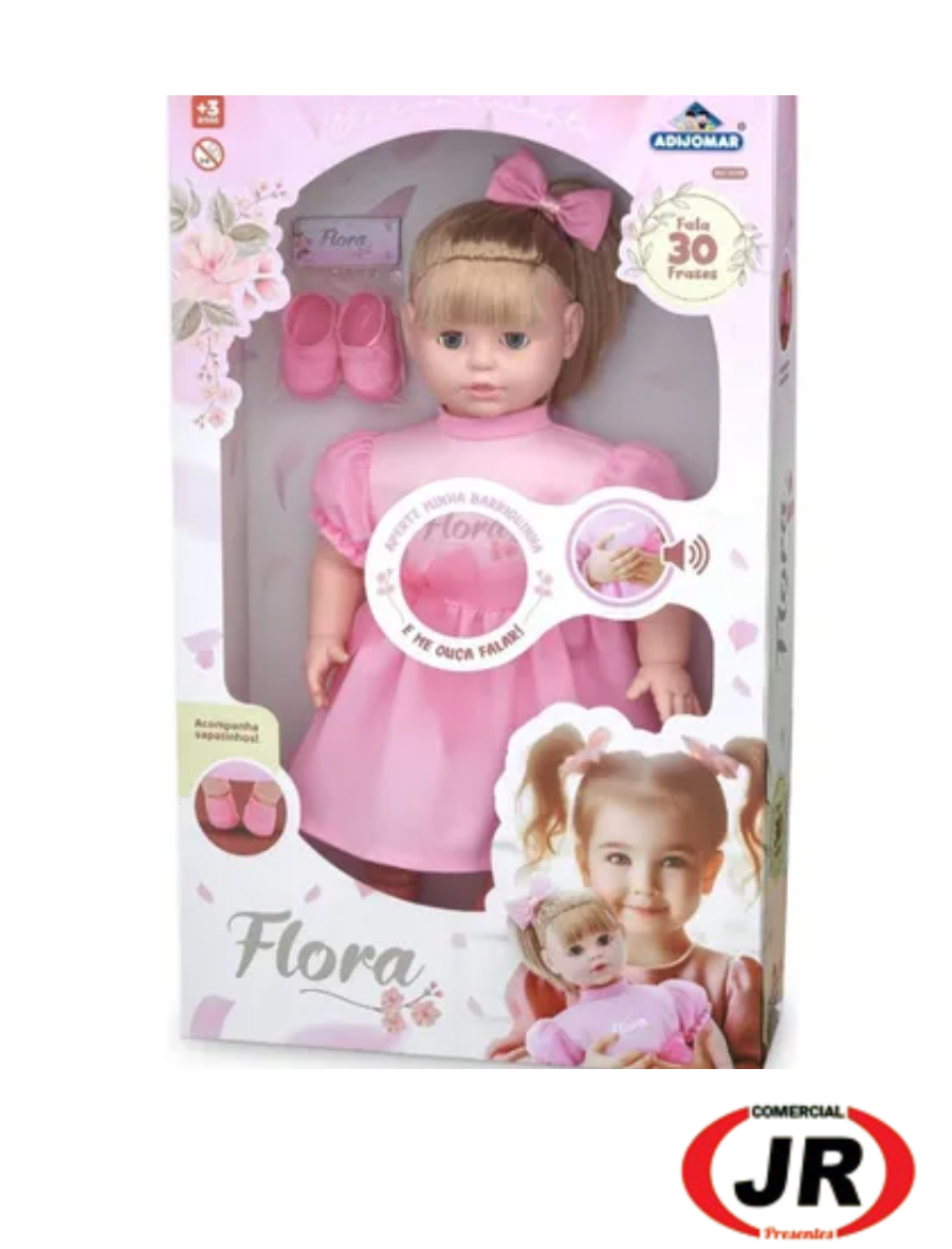 064 - Boneca Flora Com Olho Móvel 30 Frases Em Vinil E Tecido