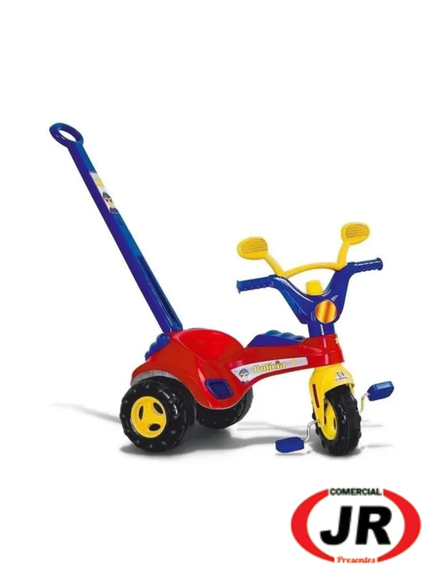 052 - Triciclo Velotrol Infantil Policial G Com Haste E Buzina Cor Vermelho