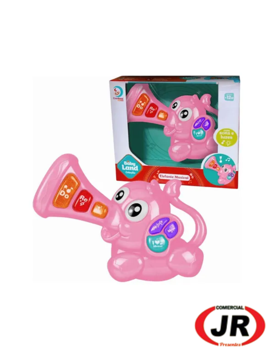 0228 - Brinquedo Elefante Musical Rosa Babyland C/ Som E Luz