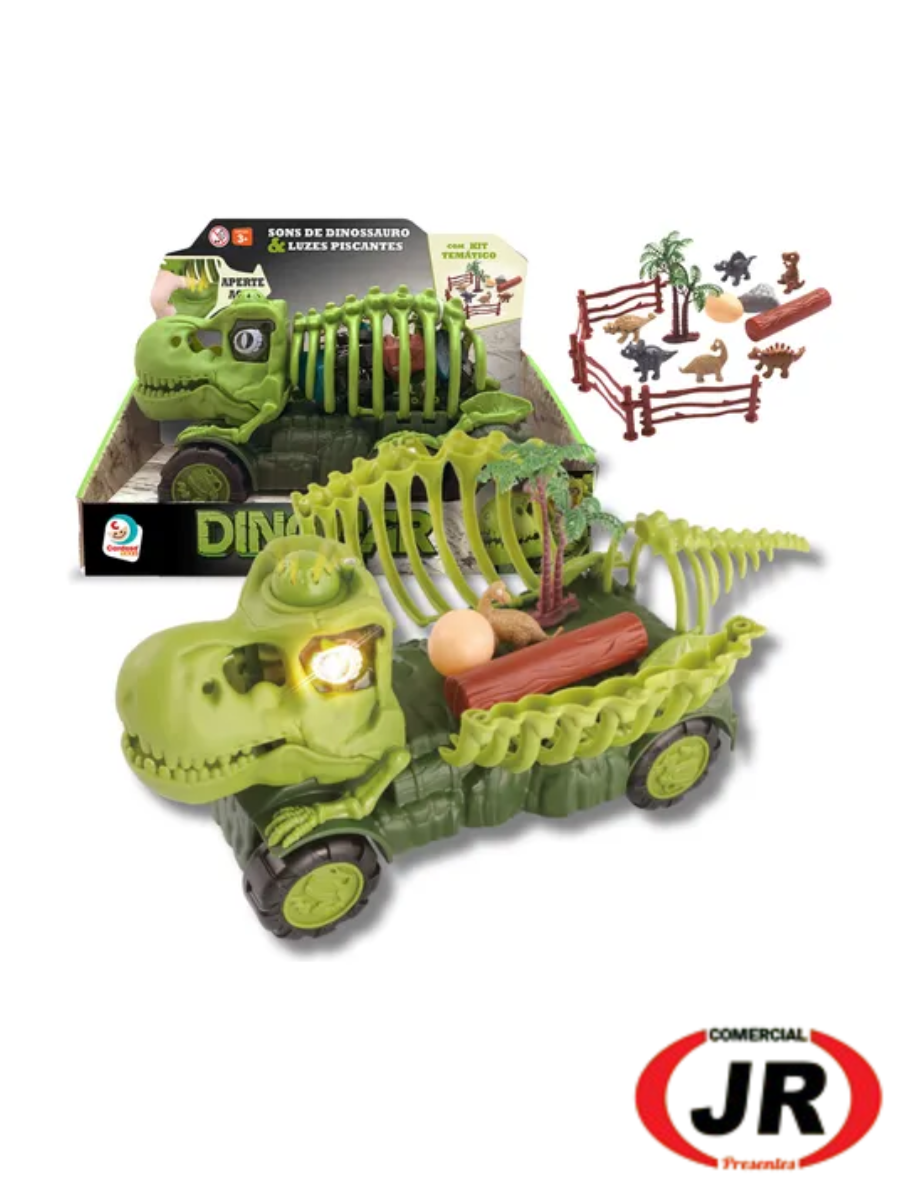 0266 - Dinocar Com Acessórios Carro Esqueleto Dinossauro Caminhão Cor Verde