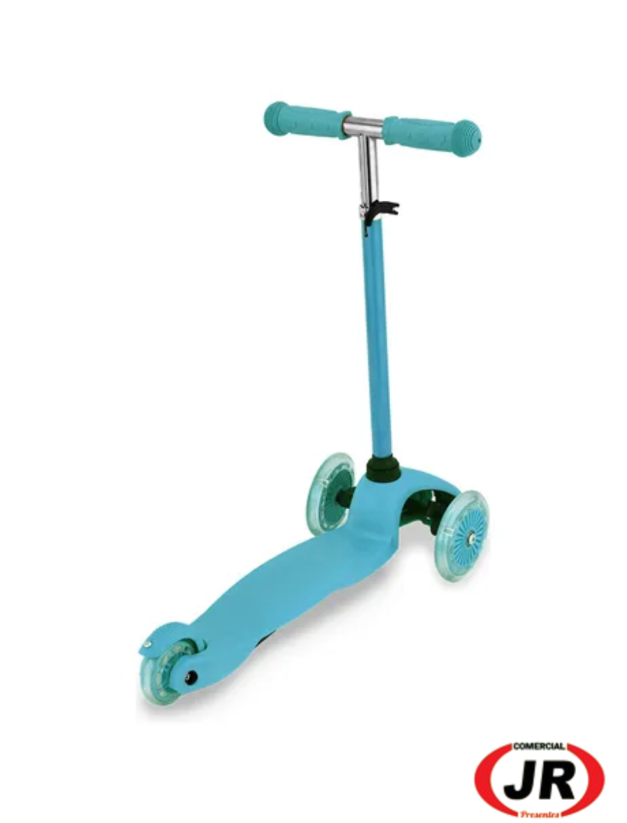 0250 - Patinete Infantil Ajustável Azul 3 Rodas Com Led