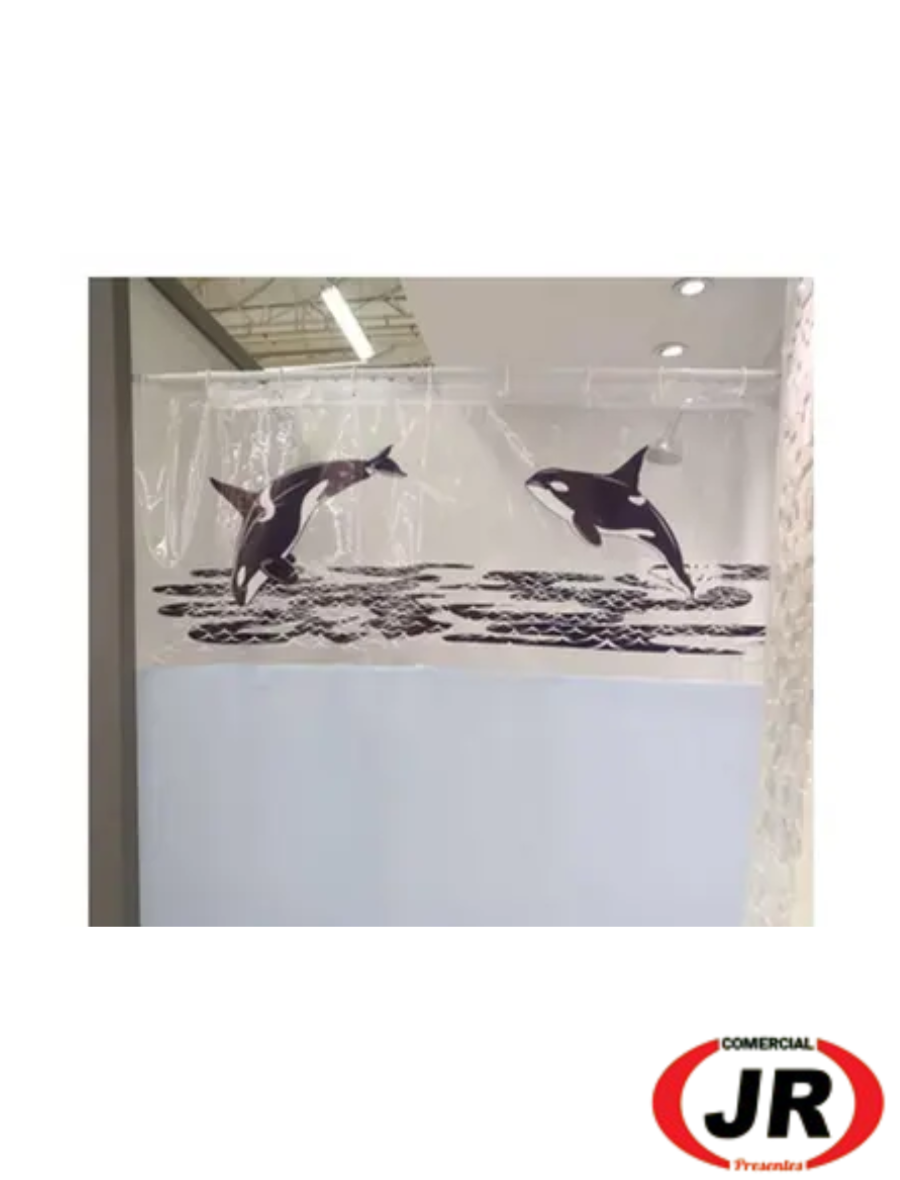0366 - Cortina para Box Banheiro com Visor e Estampas de baleia- Perfetto
