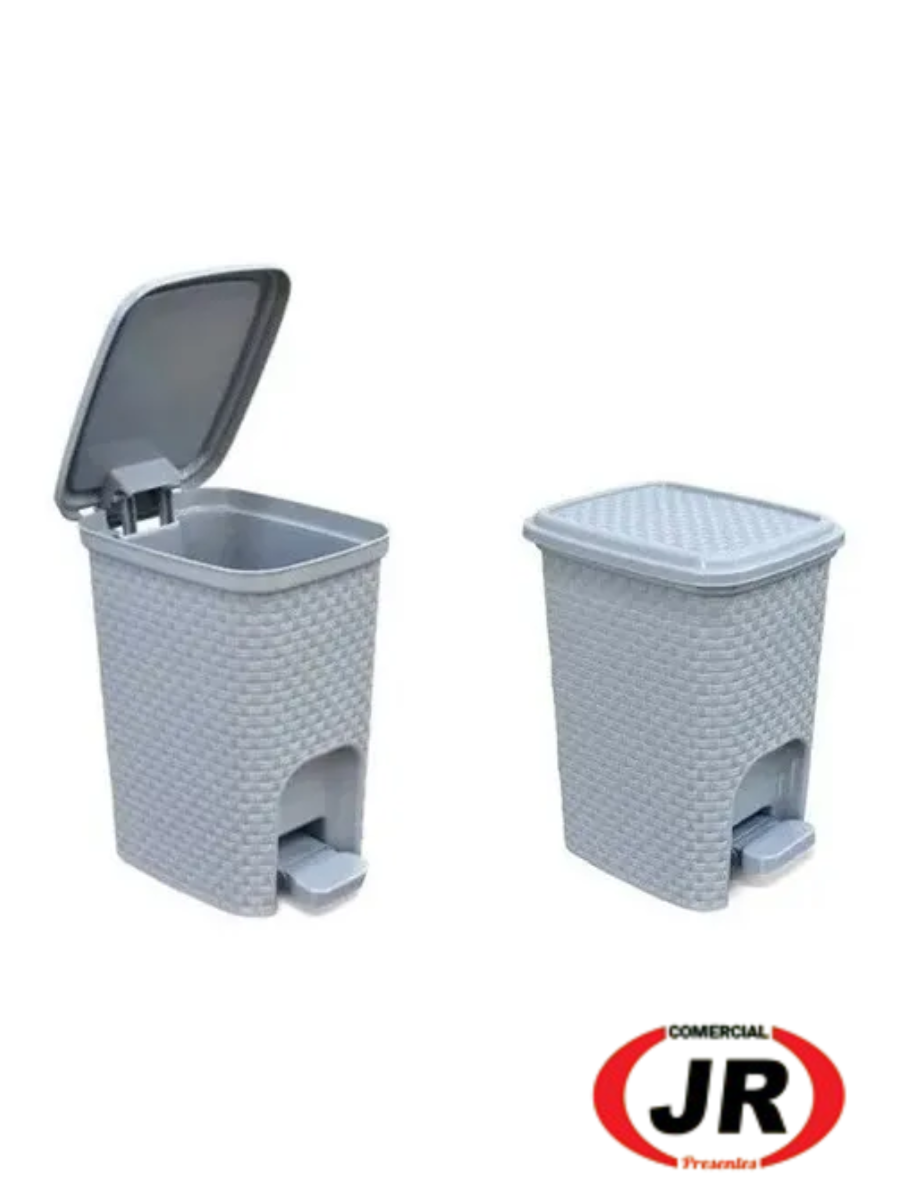 0200 - Lixeira Rattan 7 Litros Plastica Multiuso Com Pedal Dobravel Cor Cinza