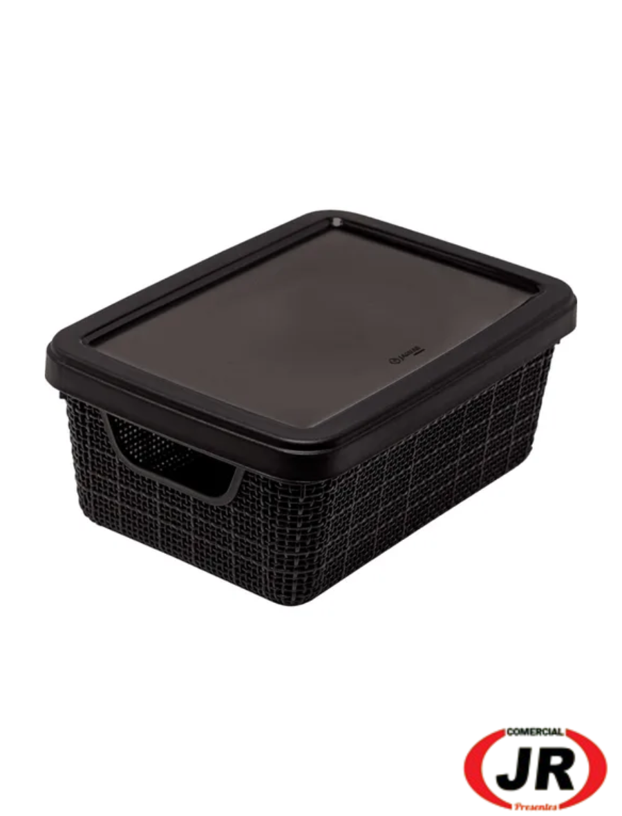0207 - Caixas Organizadora Rattan 7 Litros C/ Tampa Preta