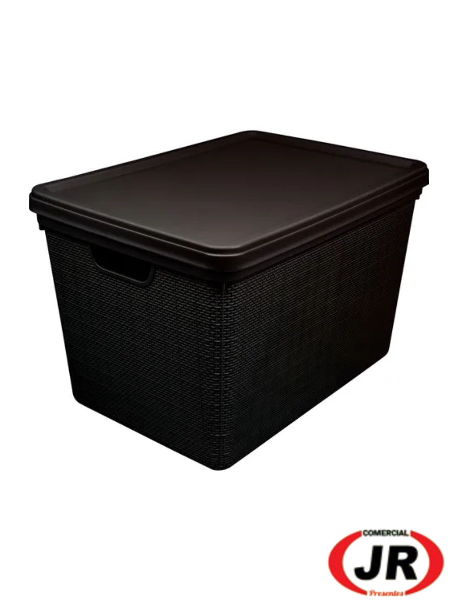 0210 - Caixa Plástica Organizadora Com Tampa Rattan 40 Litros Preto