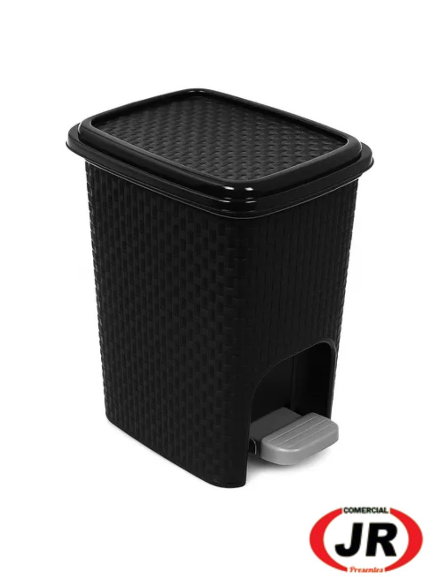 0205 - Lixeira Com Pedal Trama Rattan 7 Litros Preta