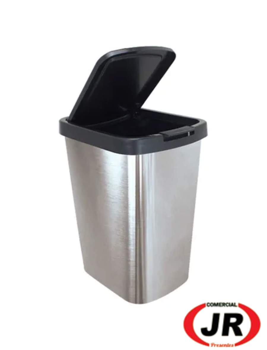 0198 - Lixeira Cesto De Lixo 9 Litros Inox Com Tampa Click Label