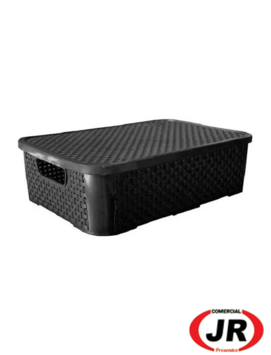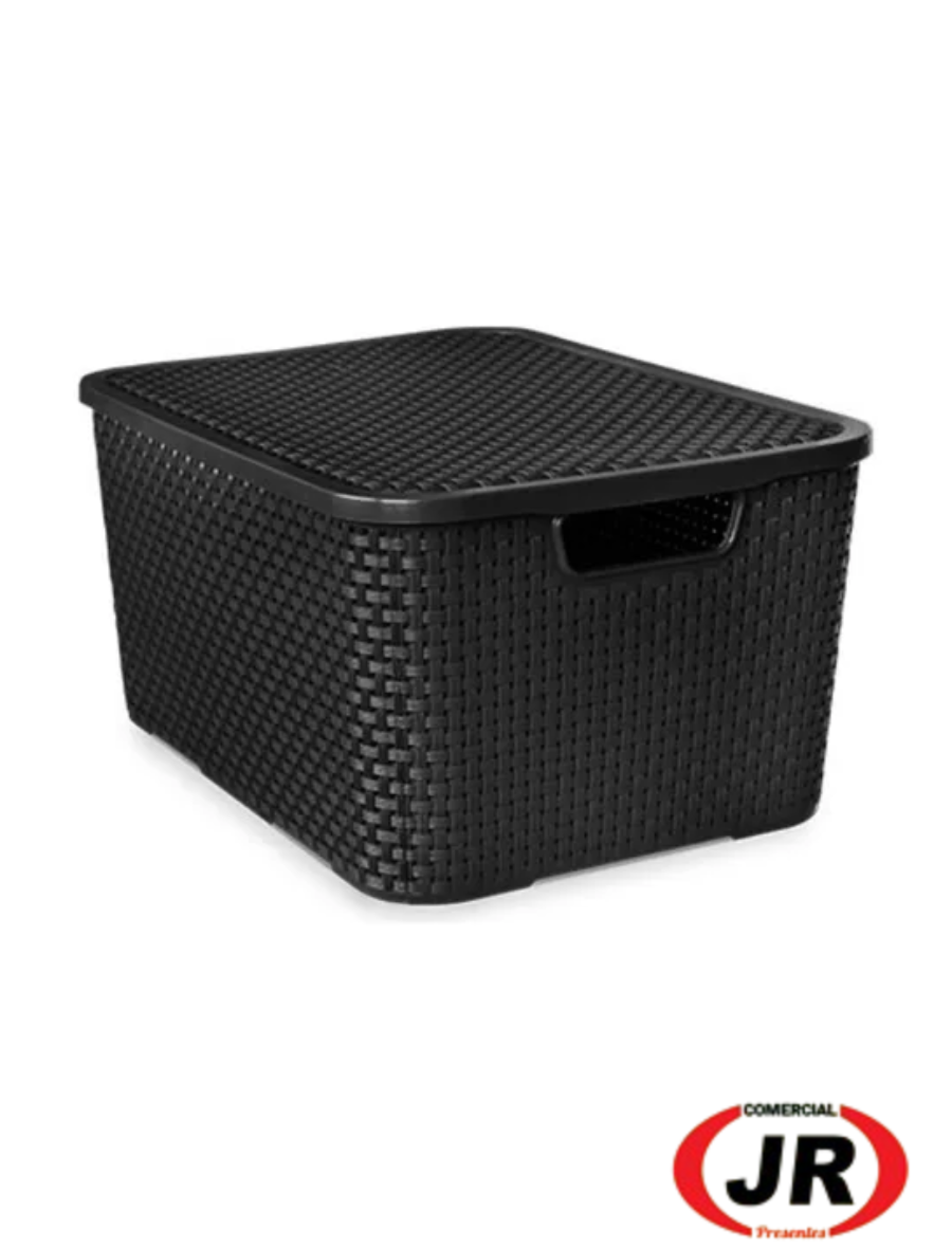 0209 - Caixa Plástica Organizadora Com Tampa Rattan 20 Litros Preto