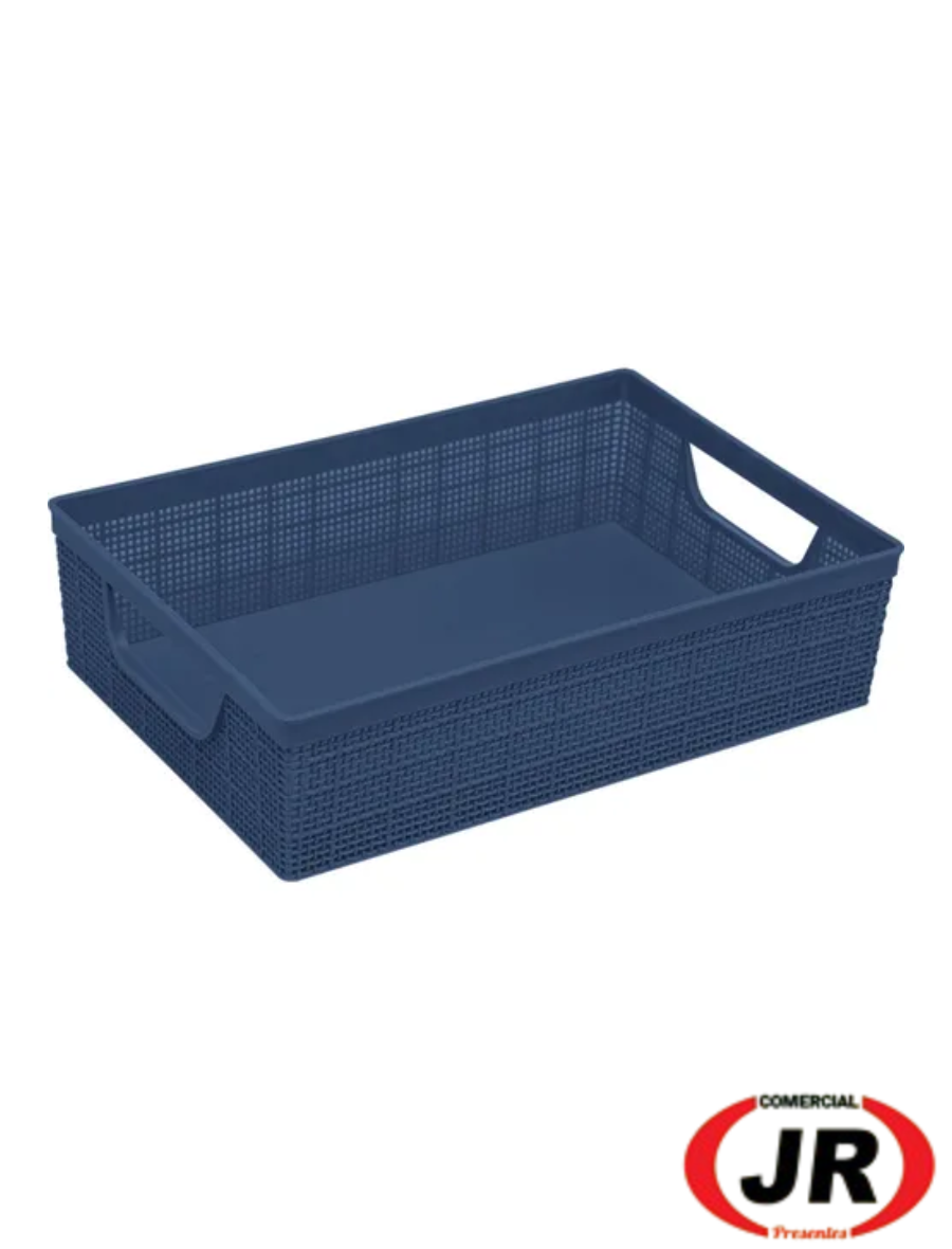 0323 - Organizador De Armário Multiuso Decorativo A4 Juta Azul 5,2l