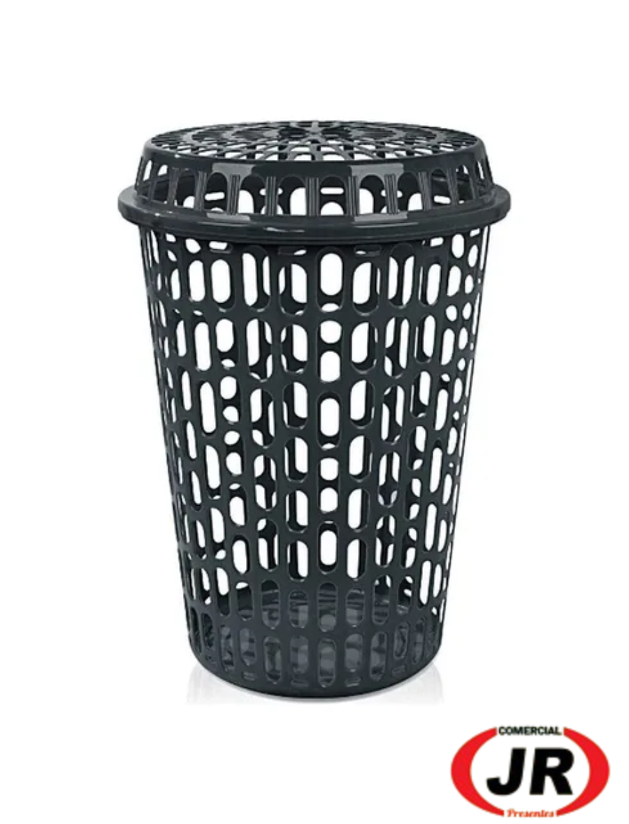 0202 - Cesto De Roupa Telado Com Tampa 60 L Preto Multiuso Arqplast