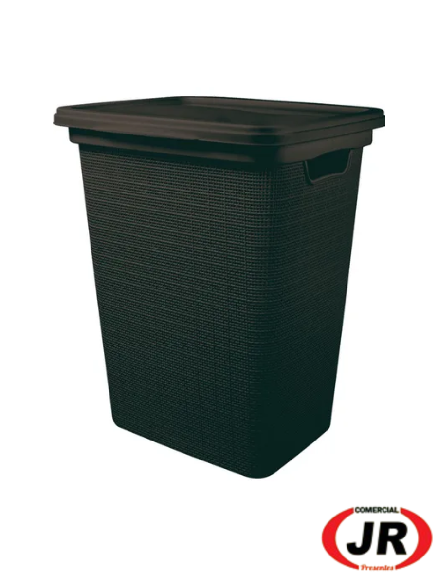 0326 - Cesto De Roupas Preto 45 Litros Com Tampa