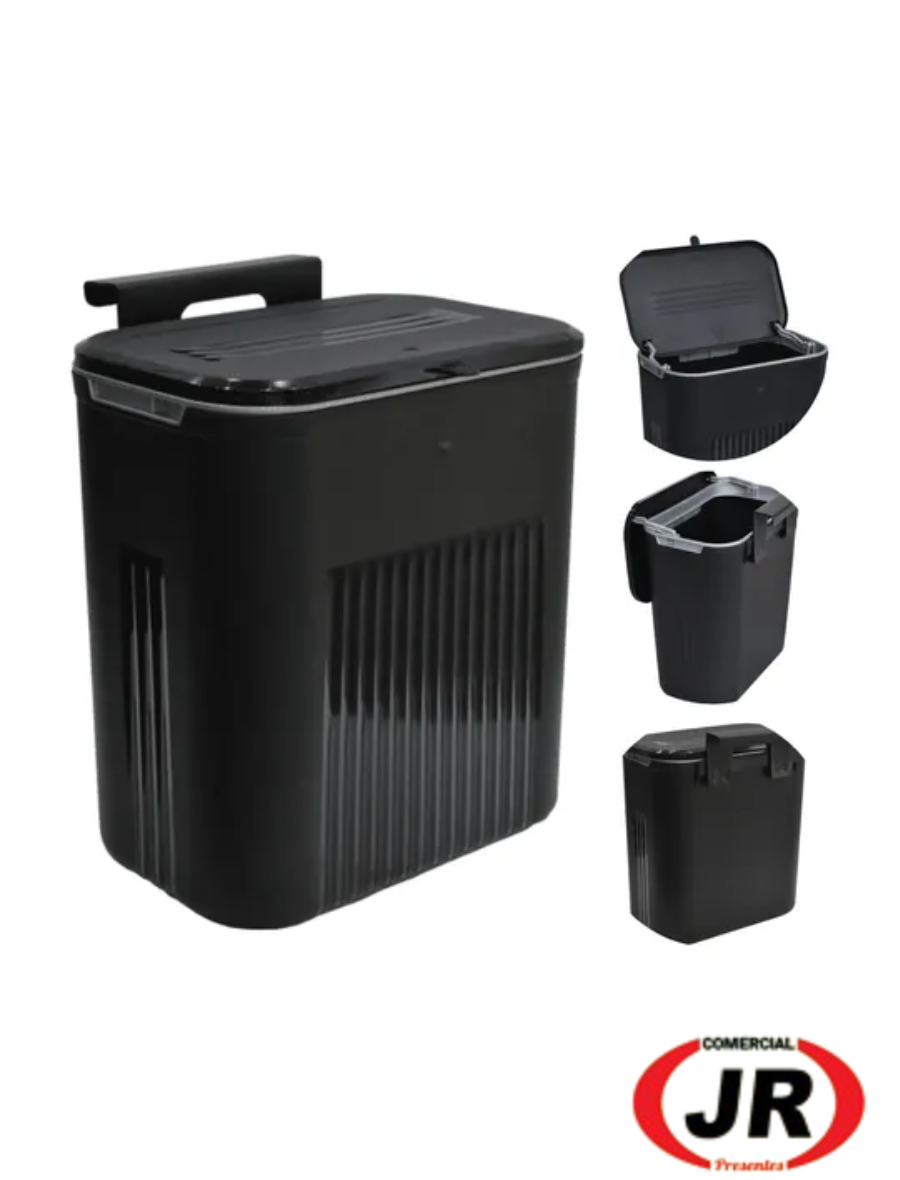 0214 - Lixeira Suspensa Preta 9 Litros C/ Suporte Adesivo E Alça