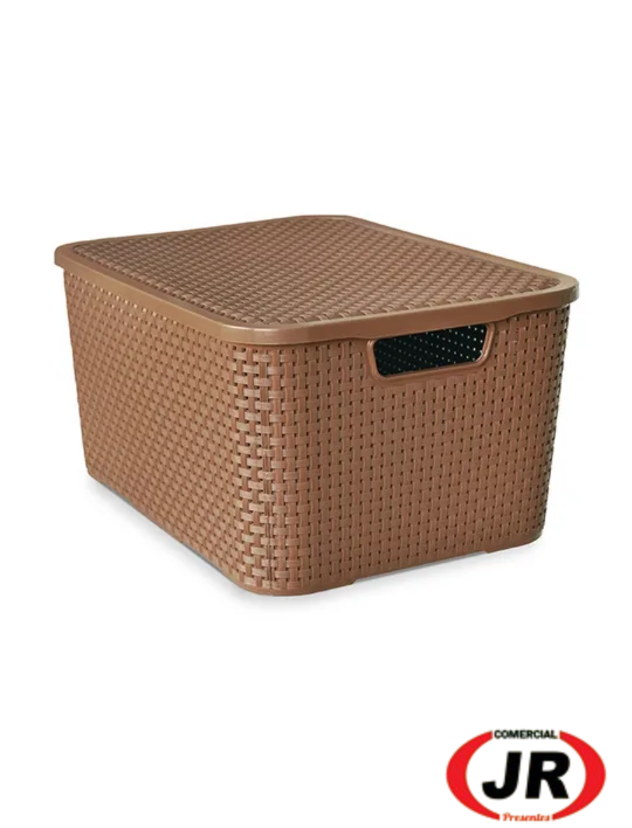 0206 - Caixa Organizadora Rattan Marrom 7 Litros Com Tampa